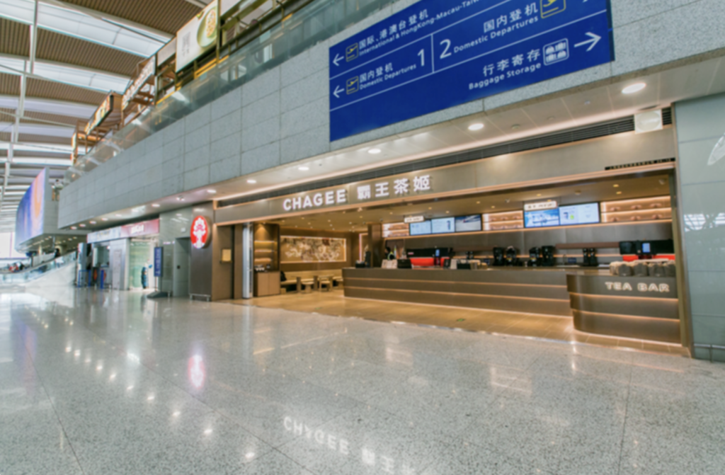 CHAGEEの浦東空港店は、浦東空港の第2ターミナルの出発フロア(3階)のEチェックインカウンターの付近にあります。
